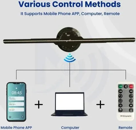 The compact and lightweight design makes it easy to install anywhere, while built-in Wi-Fi and Bluetooth allow you to upload and manage content directly from your mobile or laptop. Whether you want to display logos, product animations, or attention-grabbing hologram effects, this fan ensures unmatched clarity and brightness at 2200 cd/m.